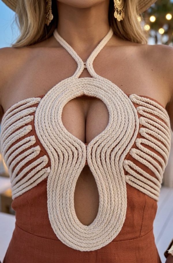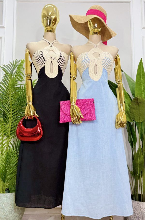🐚🌊 VESTIDO HALTER CON APLICACIÓN DE CORDON EN RELIEVE