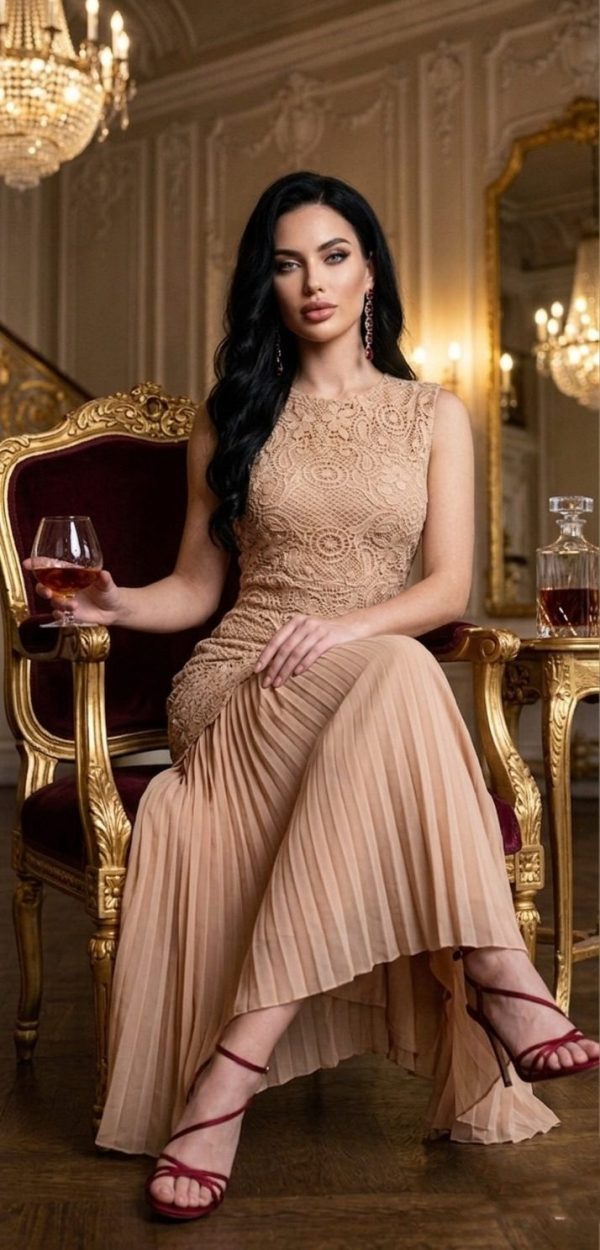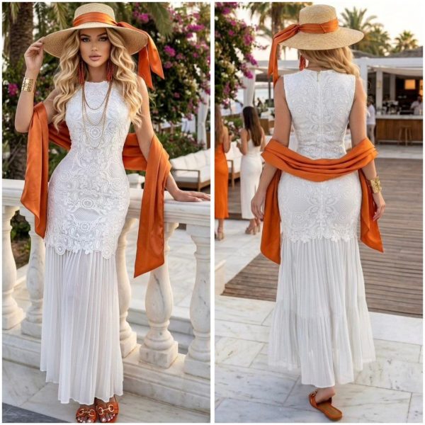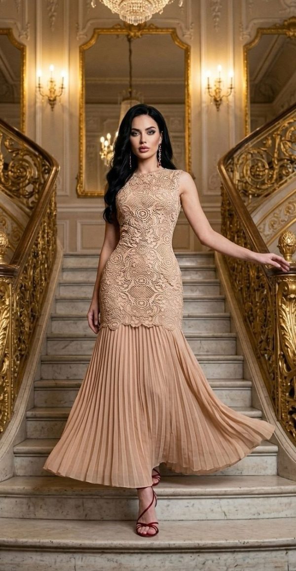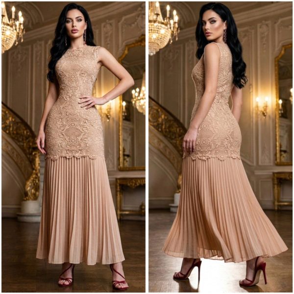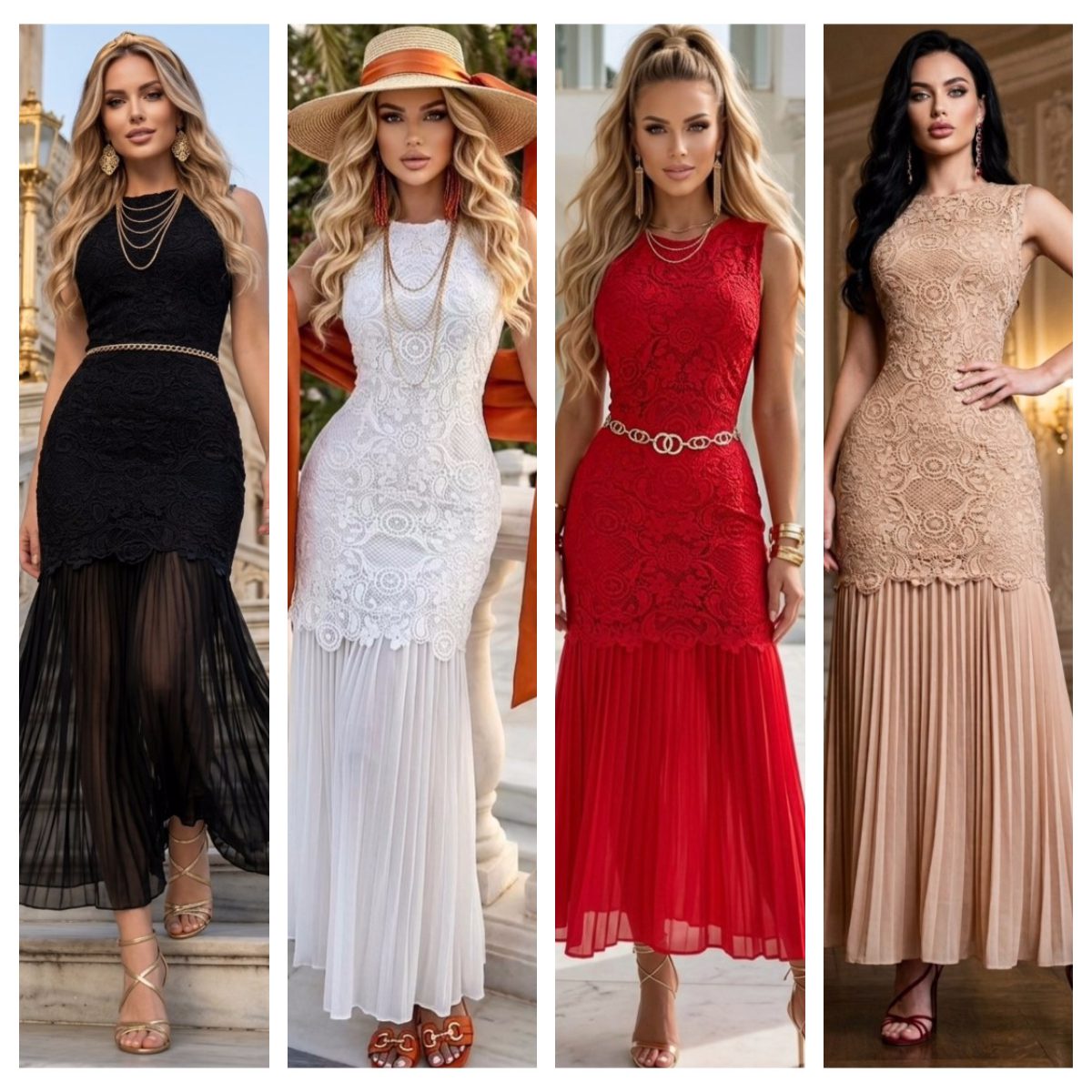 ♥️🌼 VESTIDO LARGO DE ENCAJE CON BAJO PLISADO