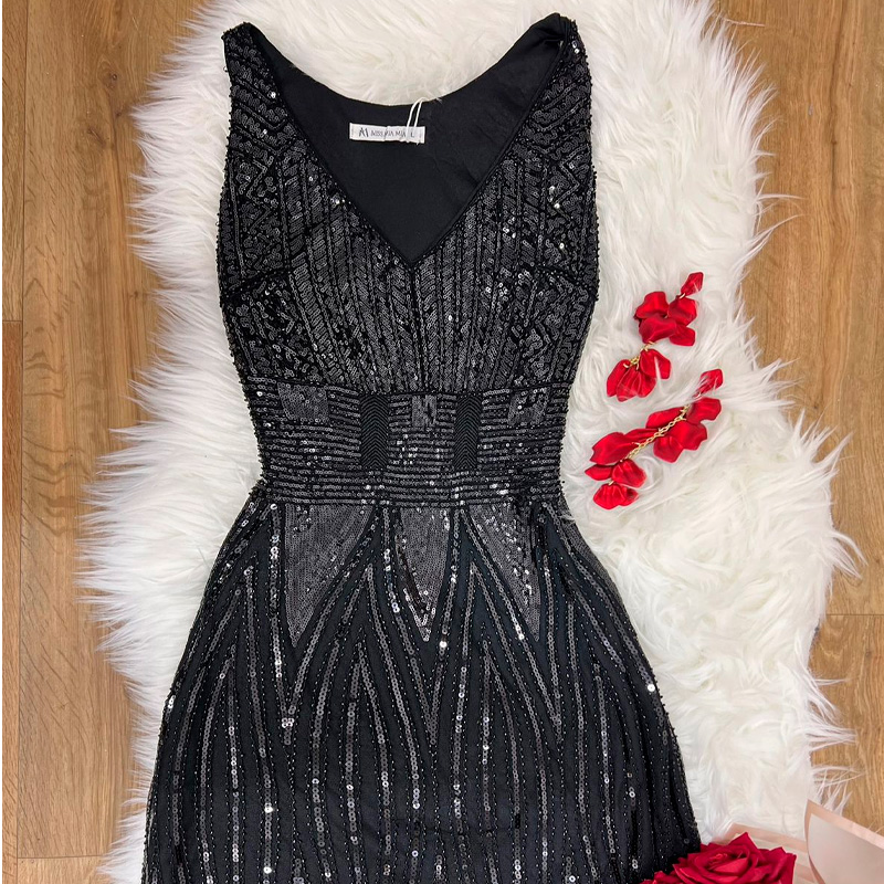 VESTIDO DE LENTEJUELA DISEÑO A TRIANGULOS