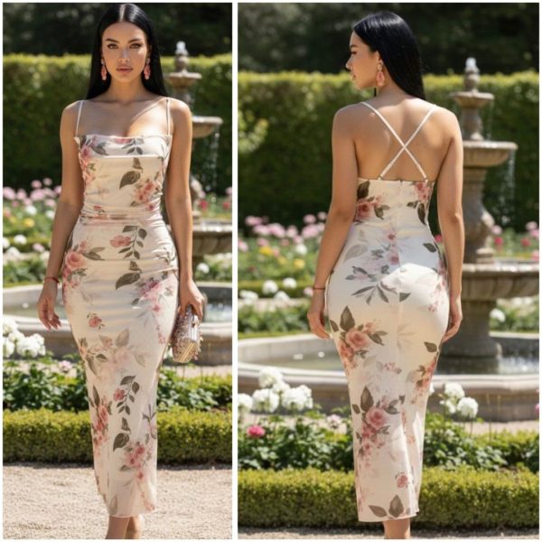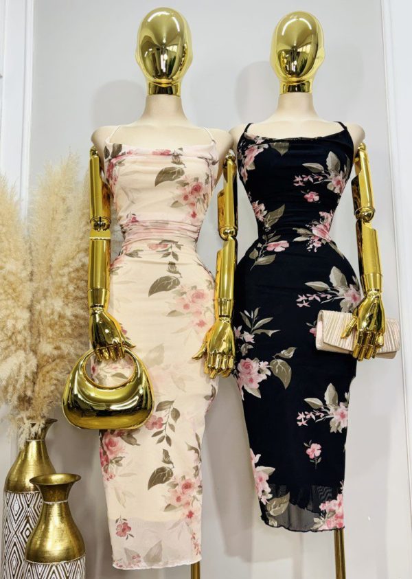 Vestido midi confeccionado en mesh suave y stretch con estampado floral. 🌸