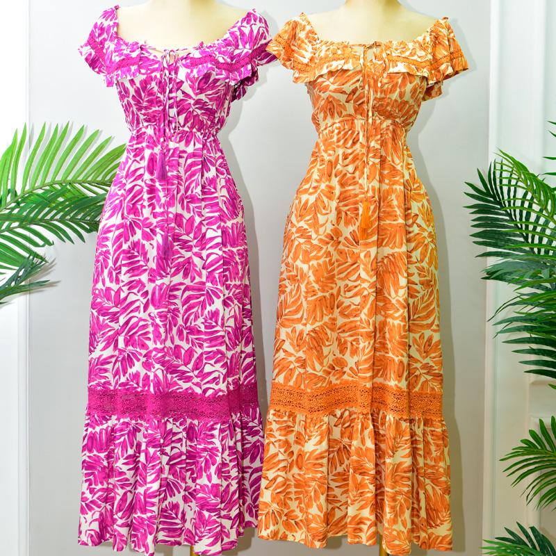 Hermoso vestido con olán y elástico en hombros. Cintas para ajustar en escote. Elástico en cintura. Sutiles detalles de bordado en falda y olanes. Tela súper fresca.