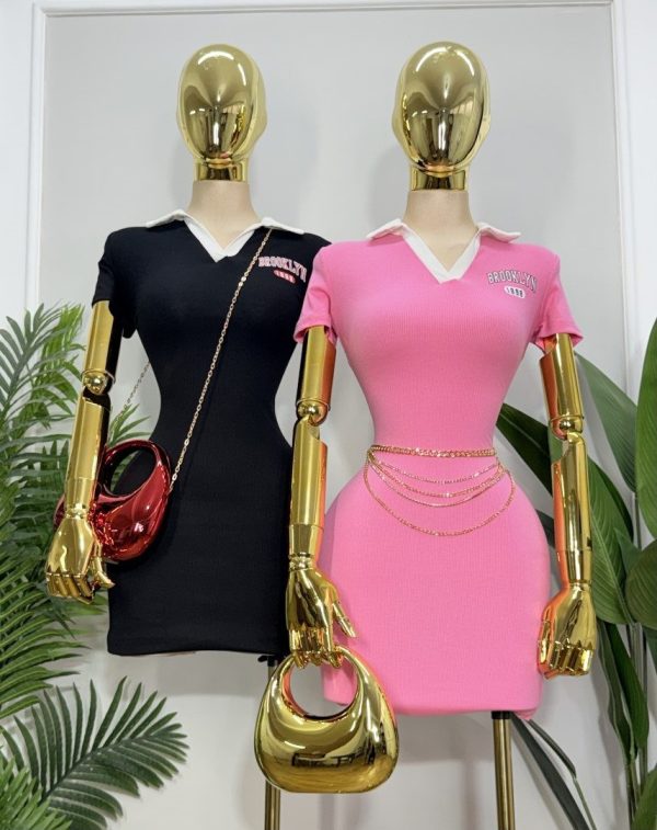 Vestido tipo polo casual y femenino. Corte ajustado que realza la silueta, confeccionado en tela acanalada elástica para mayor comodidad. Estampado “BROOKLYN 1898”. Una prenda versátil, con un estilo deportivo-chic.