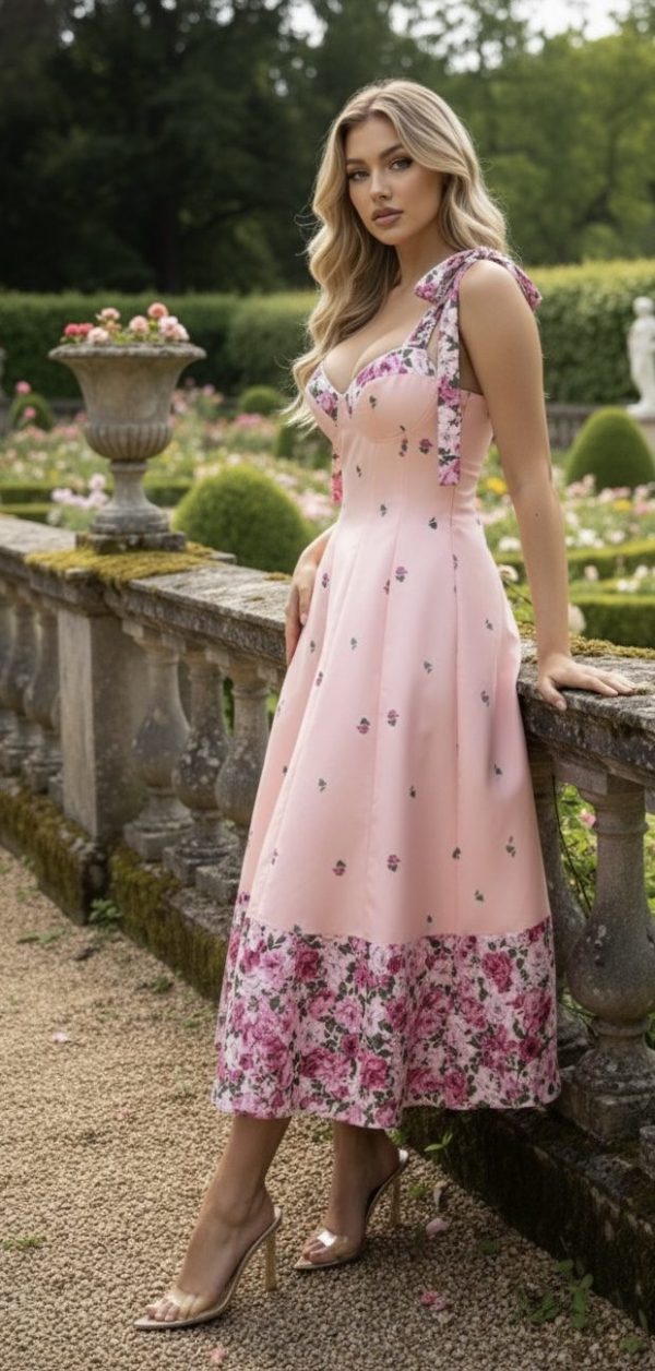 💗🌸 VESTIDO ROMÁNTICO MIDI FLORAL