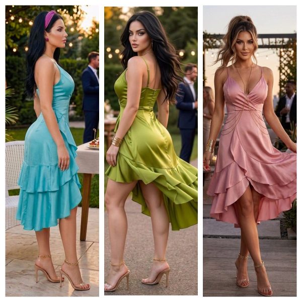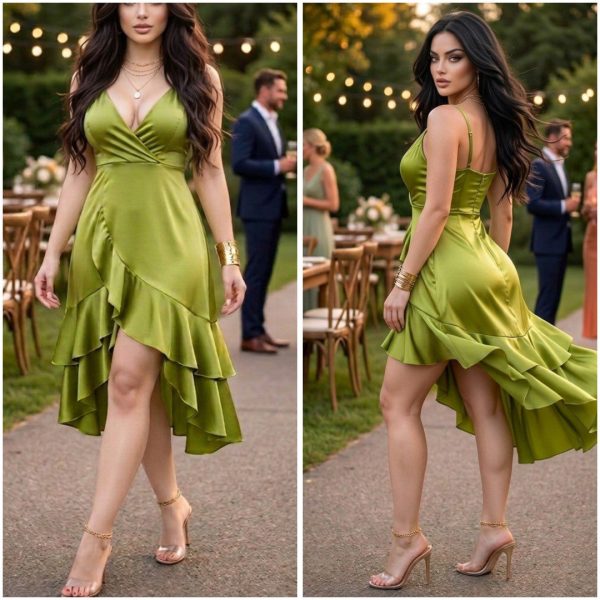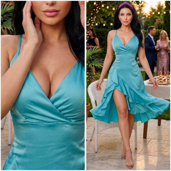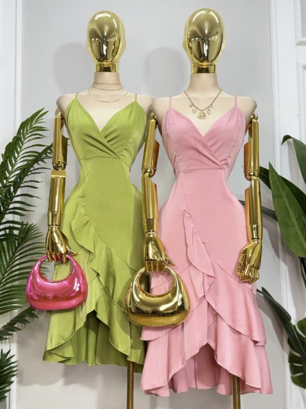 🌷💗 VESTIDO SATIN CRUZADO CON OLAN