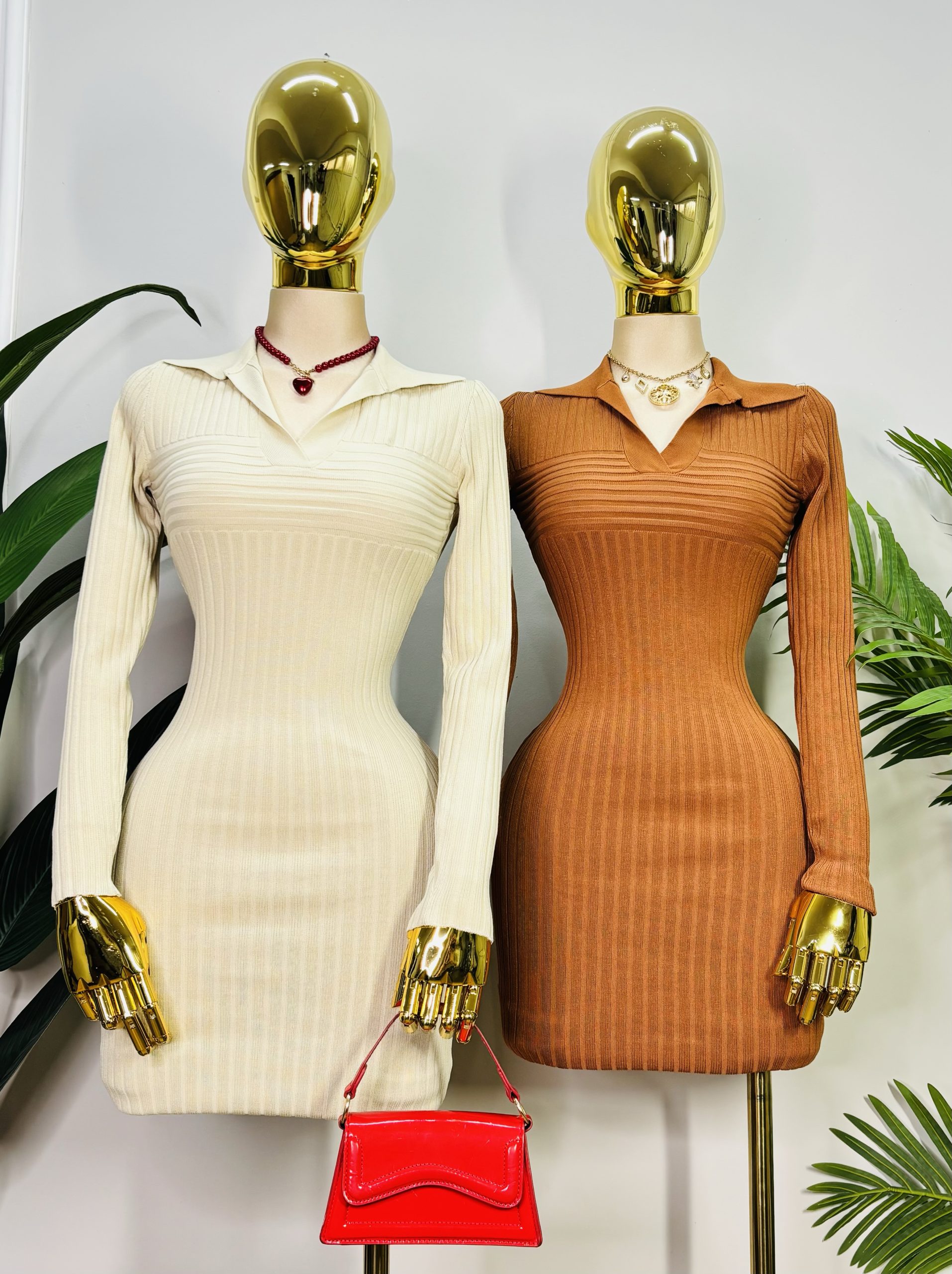 Vestido corto ajustado tipo bodycon. Cuello tipo polo. Confeccionado en tejido stretch acanalado, que se adapta cómodamente al cuerpo. Perfecto para un look cómodo, casual y moderno, ideal tanto de día como de noche ✨.