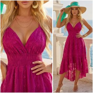 VESTIDO HALTER CON APLICACIÓN DE CORDON EN RELIEVE